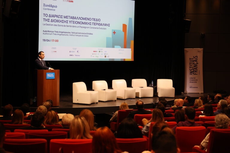 The conference organized by René Descartes College, in collaboration with the French state University, Conservatoire national des arts et métiers (CNAM Paris), titled “The Ever-Changing Field of Healthcare Management,” was successfully held on Friday, April 19, at the Théo Angelopoulos Amphitheater of the French Institute of Greece.